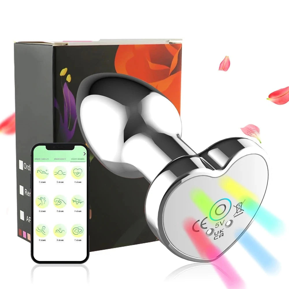 Vibrating Heart-Shape, Metal, Anal Plug with Remote